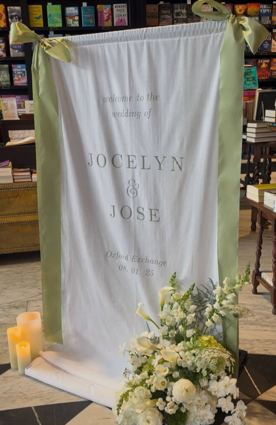 On Fabric: For a softer, more organic feel, UV printing on fabric provides an elegant alternative to traditional signage. It’s perfect for banners, backdrops, and hanging signs, offering flexibility in both display and design. The cured ink maintains vibrant color even on lightweight fabrics, making it a great choice for outdoor weddings or draped installations that move gently with the breeze.